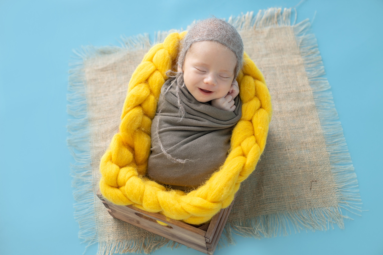 Когато майката на Габриел се свърза с мен за първата му фотосесия, той все още не беше роден. Всички го очаквахме с нетърпение и поддържахме връзка, за да изберем най-подходящия момент след раждането. Наложи се да отложим и поизчакаме след раждането, докато едно леко обривче поотмине, но все пак успяхме да го хванем преди да е порасъл много. Все още беше достатъчно гъвкав за позите, макар и не чак толкова поспалив 🙂 Но какви усмивки раздаваше….