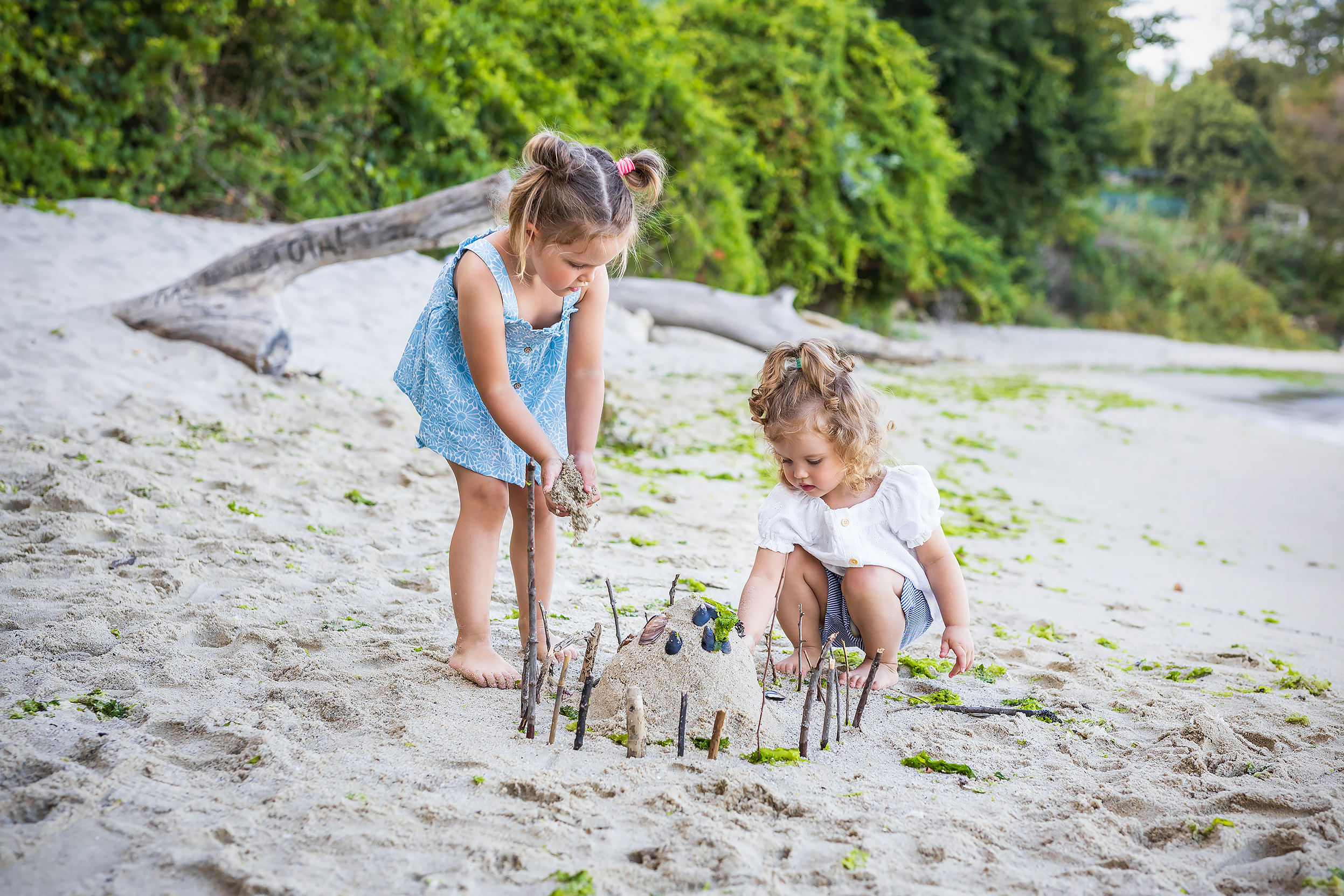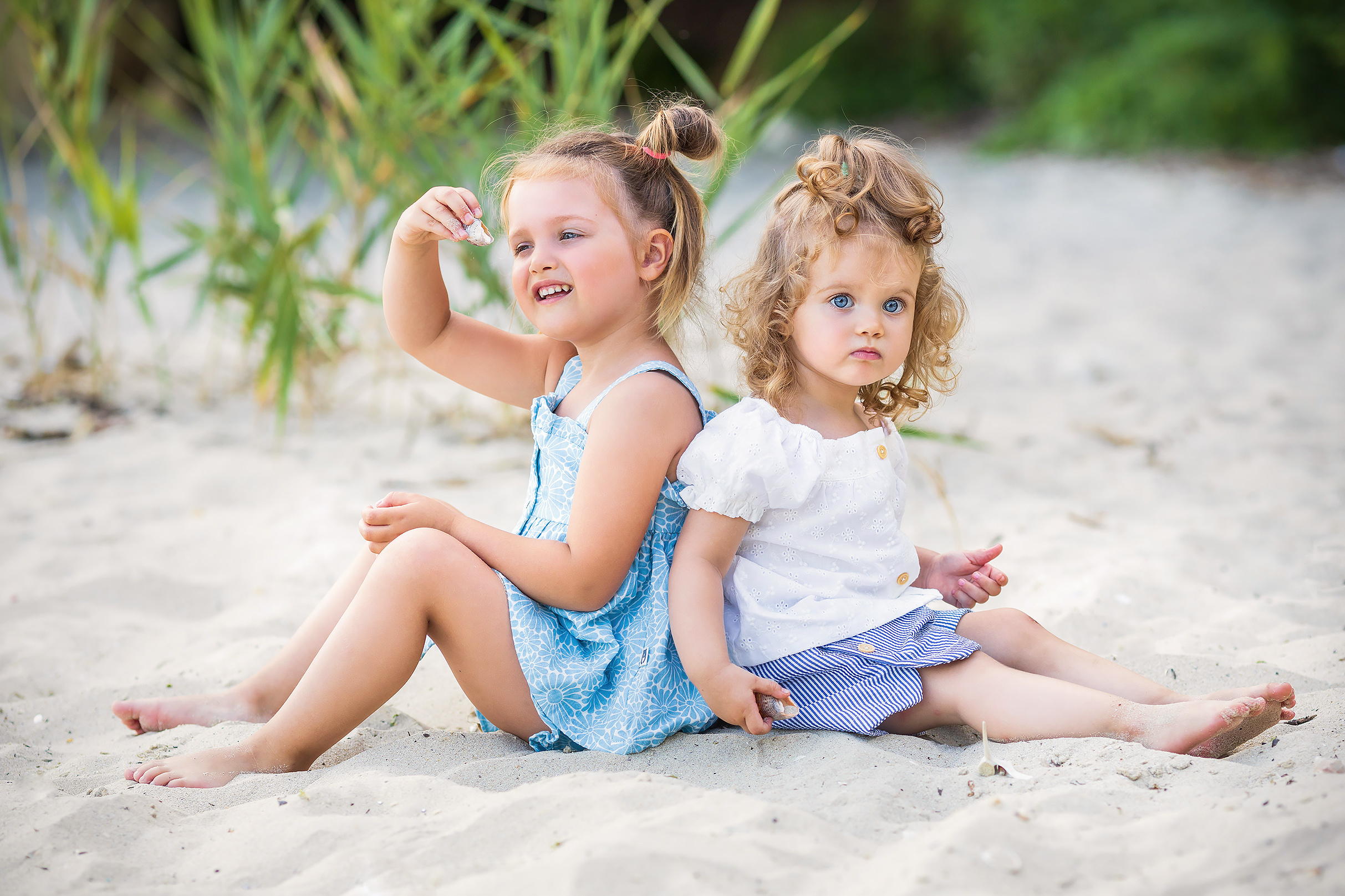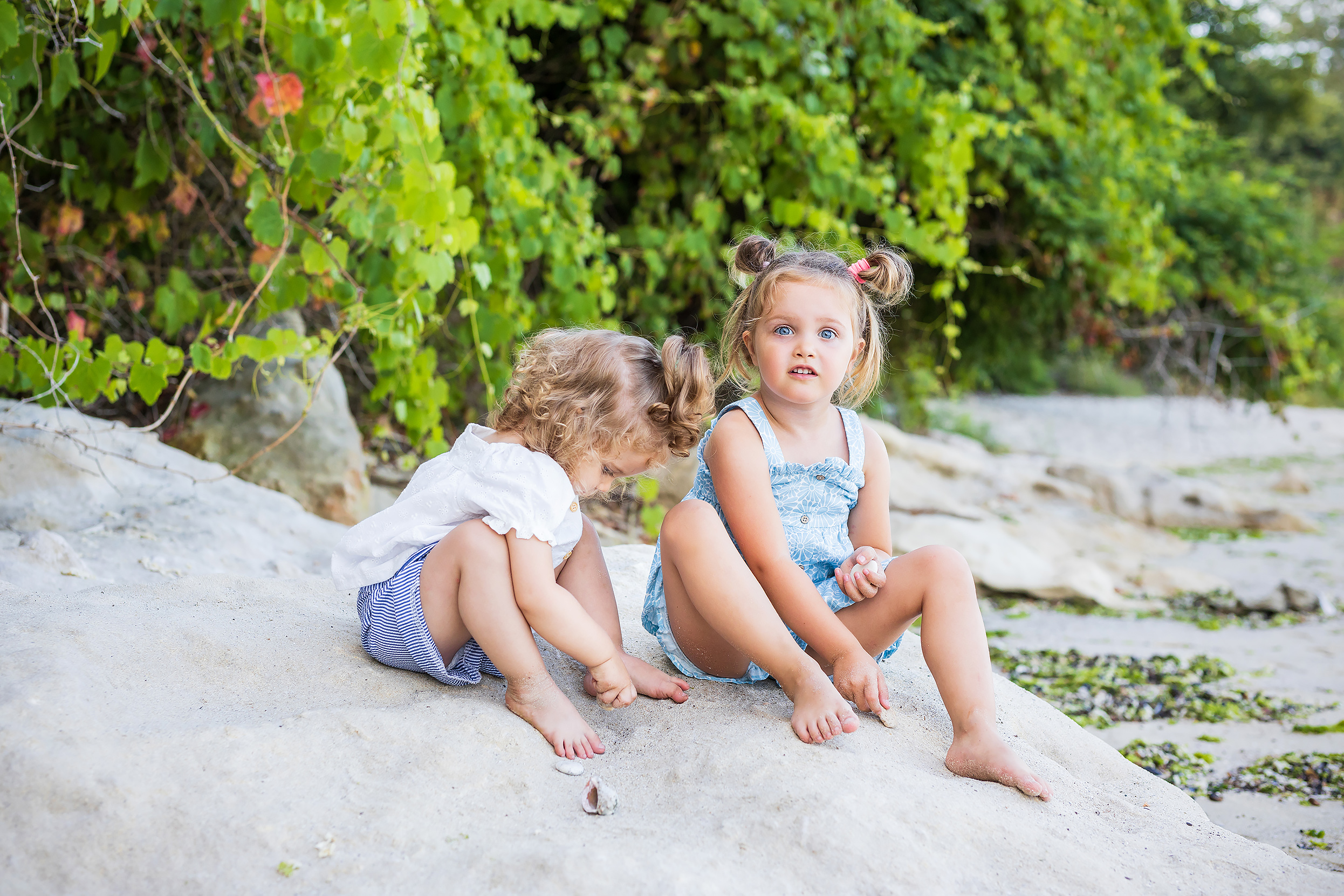 Две приказни сестрички Иви и Стели – в разгара на лятото. Когато е лято, най- любимите фотосесии на децата са край морето. Там игрите са весели, дяволиите естествени, а палавите крачета оставят малки издълбани стъпчици в пясъка. Вълните приканват към игри и усмихват до ушите.